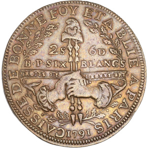 FRANCE / CAPÉTIENS - FRANCE / ROYAL Constitution (1791-1792). Caisse de Bonne foy, 6 blancs ou 2 sols 6 denier…