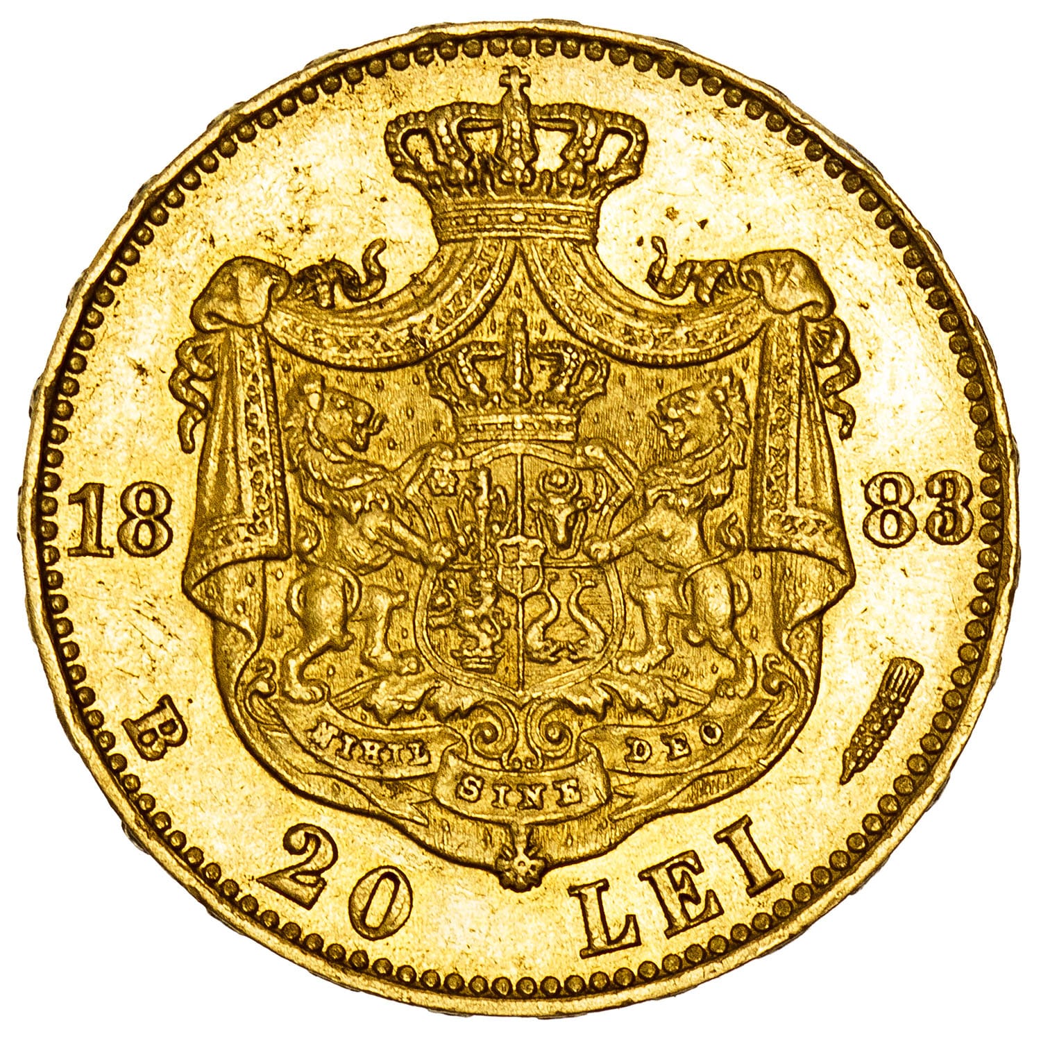 ROUMANIE Carol Ier, Prince (1866-1914). 20 lei 1883.