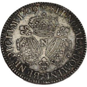 FRANCE / CAPÉTIENS - FRANCE / ROYAL Louis XIV (1643-1715). Écu aux trois couronnes 1709, E, Tours.…