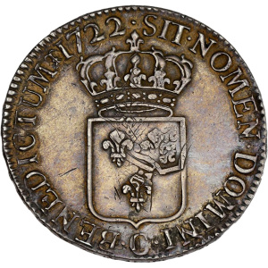 FRANCE / CAPÉTIENS - FRANCE / ROYAL Louis XV (1715-1774). Écu de France 1722, B, Rouen.…