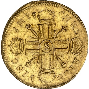 FRANCE / CAPÉTIENS - FRANCE / ROYAL Louis XIV (1643-1715). Louis aux huit L et aux insignes, flan neuf 1702, S…