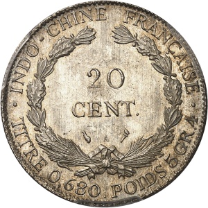 INDOCHINE - INDOCHINA IIIe République (1870-1940). Essai de 20 cent(ièmes), tranche striée et poids moyen, Fra…