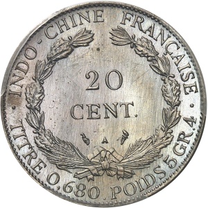 INDOCHINE - INDOCHINA IIIe République (1870-1940). Essai de 20 cent(ièmes), tranche striée et rainurée, Frappe…