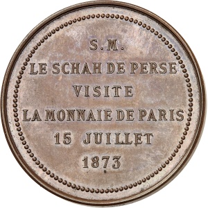 IRAN Nassereddine Chah (1848-1896). Médaille de visite de la Monnaie de Paris, le 15 juillet 1873 par le Schah…