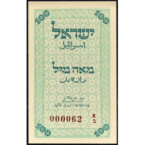 ISRAËL - ISRAEL 100 mils émission d’urgence type “petit numéro exceptionnel” ND (1948).…