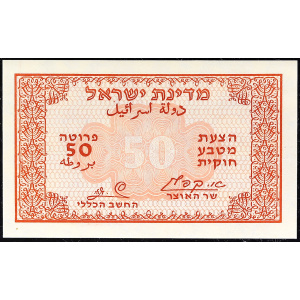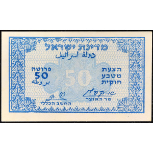 ISRAËL - ISRAEL50 prutah émission d’urgence type “petit numéro” ND (1952).…