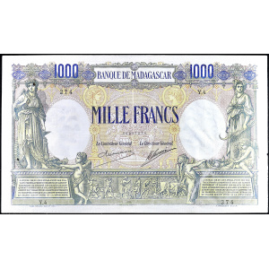 MADAGASCAR 1000 francs type SPECIMEN ND (1926-1937).
