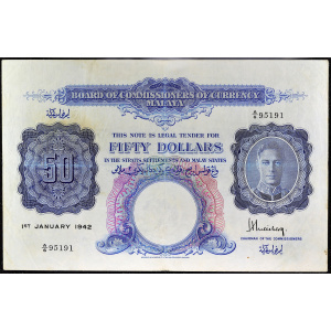 MALAISIE - ÉTABLISSEMENTS DES DÉTROITS - BRITISH MALAYSIA 50 dollars type “George VI” 1er janvier 1942.…