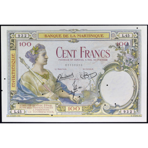MARTINIQUE 100 francs type “Femme au sceptre” ND (1945).