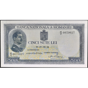 ROUMANIE - ROMANIA 500 lei avec le portrait du roi Carol II 30 avril 1936.