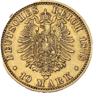 ALLEMAGNE - GERMANY Prusse, Guillaume Ier (1861-1888). 10 mark 1878, C, Francfort.…