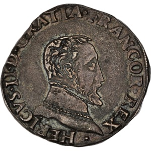 FRANCE / CAPÉTIENS - FRANCE / ROYAL Henri III (1574-1589). Double tournois, buste à droite 1579, P, Dijon.…