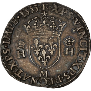 FRANCE / CAPÉTIENS - FRANCE / ROYAL Henri II (1547-1559). Teston à la tête nue, 1er type 1553, M, Toulouse.…
