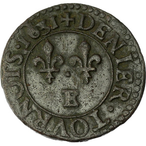 FRANCE / CAPÉTIENS - FRANCE / ROYAL Louis XIII (1610-1643). Denier tournois 1631, E, Tours.…