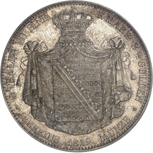 ALLEMAGNE - GERMANY Saxe-Altenburg, Georges (1848-1853). Double thaler (3 1/2 florins) 1852 F, Dresde.…