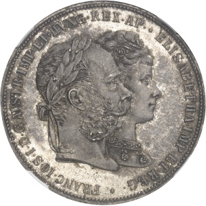 AUTRICHE - AUSTRIA François-Joseph Ier (1848-1916). 2 florins, 25e anniversaire de mariage 1879, Vienne.…