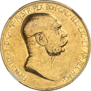 AUTRICHE - AUSTRIA François-Joseph Ier (1848-1916). 100 corona, 60e anniversaire de règne 1908, Kremnitz.…