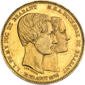 BELGIQUE - BELGIUM Léopold Ier (1831-1865). Module de 100 francs en Or, mariage du duc et de la duchesse de Br…