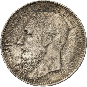 BELGIQUE - BELGIUM Congo, Léopold II (1885-1908). 5 francs “R. D. BELGES” 1887, Bruxelles.…