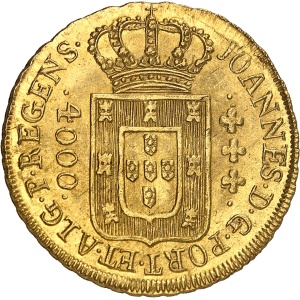 BRÉSIL - BRAZIL Jean, prince régent (1799-1816). 4000 réis, petite couronne, frappe désaxée 1812, Rio de Janei…