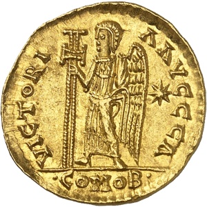 FRANCE / MÉROVINGIENS - FRANCE / MEROVINGIANWisigoths, séries pseudo-impériales. Solidus au nom de Justin Ier …