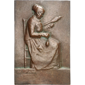 FRANCE - FRANCE IIIe République (1870-1940). Fonte uniface, Vieille paysanne filant, par P. Niclausse ND (1908…