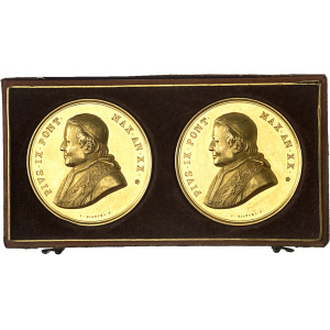 ITALIE - ITALY Vatican, Pie IX (1846-1878). Coffret de 2 médailles d’Or d’honneur et de mérite, par G. Bianchi…