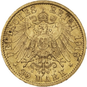 ALLEMAGNE - GERMANY Prusse, Guillaume II (1888-1918). 20 mark 1913, A, Berlin.
