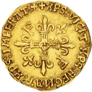 FRANCE / CAPÉTIENS - FRANCE / ROYAL Henri II (1547-1559). Faux d’époque du Henri d’or, 1er type 1557, B, Rouen…