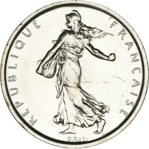 FRANCE - FRANCE Ve République (1958 à nos jours). Essai de 5 francs Semeuse 1970, Paris.…