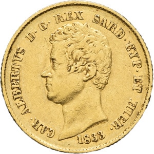 ITALIE - ITALY Savoie-Sardaigne, Charles-Albert (1831-1849). 20 lire 1833, Tête d’aigle, Turin.…