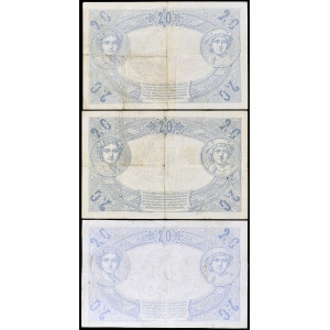FRANCE - FRANCE Lot (3) - 20 francs type "Bleu et bistre à texte noir" avec dates différentes 1874, 1875 et 19…