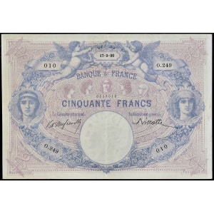 FRANCE - FRANCE 50 francs type “Bleu et rose” 17-9-1890.