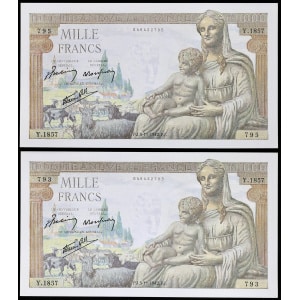 FRANCE - FRANCE Lot (2) - 1000 francs type "Déesse Déméter" 5-11-1942.
