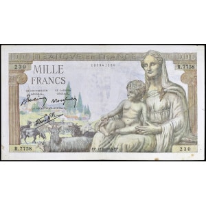FRANCE - FRANCE 1000 francs type “Déesse Déméter” - origine Hold-up de Clermont-Ferrand 19-8-1943.…
