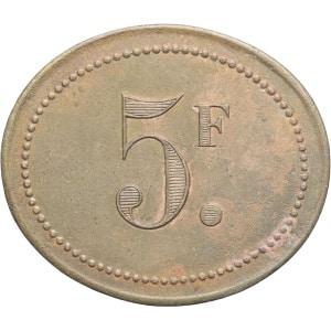 ALGÉRIE - ALGERIA IIIe République (1870-1940). Monnaie de nécessité, Établissements Veuve Cote à Alger, 5 fran…