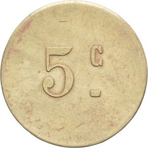 ALGÉRIE - ALGERIA IIIe République (1870-1940). Monnaie de nécessité, Bar-brasserie Pacaud (à Alger ?), 5 franc…