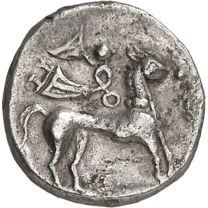 GAULE - CELTIC Ambiens / Ouest du Belgium. Lamellaire en argent, classe III aux chevaux affrontés, var. 6 ND (…