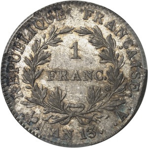 FRANCE - FRANCE Premier Empire / Napoléon Ier (1804-1814). 1 franc calendrier révolutionnaire An 13 (1805), A,…