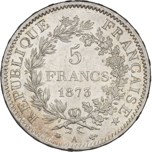 FRANCE - FRANCE IIIe République (1870-1940). 5 francs Hercule 1873, A, Paris.