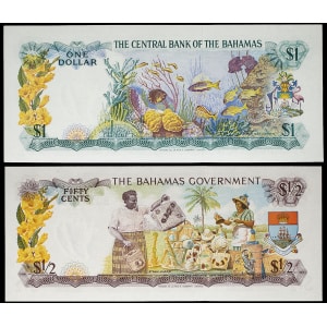 BAHAMAS - BAHAMAS Lot (2) - 1/2 et 1 dollar avec le portrait de la reine Élisabeth II 1965 / 1974.…