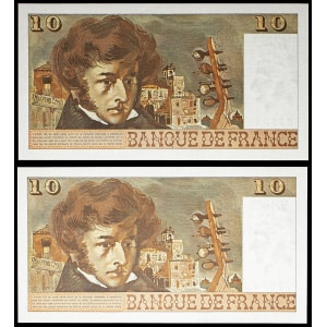 FRANCE - FRANCE Lot (2) - 10 francs type “Hector Berlioz” avec numéro spécial 55555 3-10-1974.…