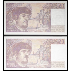 FRANCE - FRANCE Lot (2) - 20 francs type “Claude Debussy” modifié FAUTÉ / ERROR sans numéros, signature ni dat…
