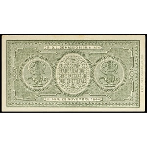 ITALIE - ITALY 1 lire 23 novembre 1944.