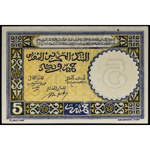MAROC - MOROCCO 5 francs, type modifié 23-11-1941.