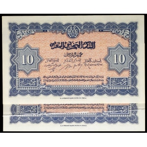 MAROC - MOROCCO Lot (2) - 10 francs, impression US (deuxième émission) avec numéros consécutifs 1-8-1943.…