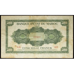 MAROC - MOROCCO 5000 francs, impression US (SPÉCIMEN) 1943.