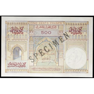 MAROC - MOROCCO 500 francs type “vue de Rabat” (SPÉCIMEN) 18-7-1949.