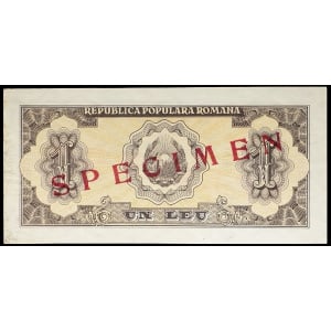 ROUMANIE - ROMANIA 1 leu (SPÉCIMEN) 1952.