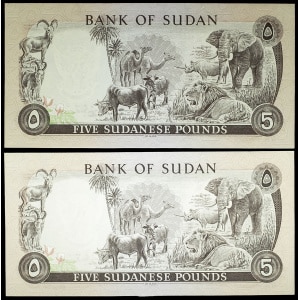 SOUDAN - SUDAN Lot (2) - 5 pounds avec numéros consécutifs 28 mai 1978.